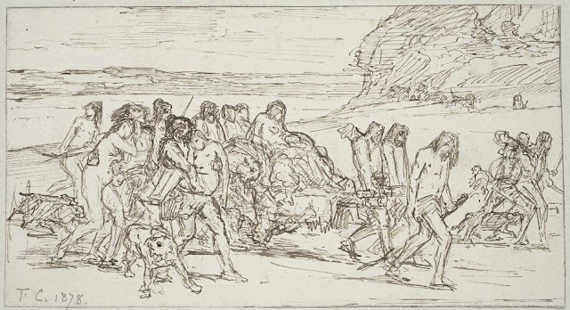 C'est dans un esprit plus réaliste et plus conforme aux recherches scientifiques que Fernand Anne Piestre dit Cormon aborde le même sujet dans la deuxième partie de sa carrière. Elève de Cabanel et de Fromentin, Cormon s'est fait connaître par des tableaux orientalistes, dont certains relativement saignants.